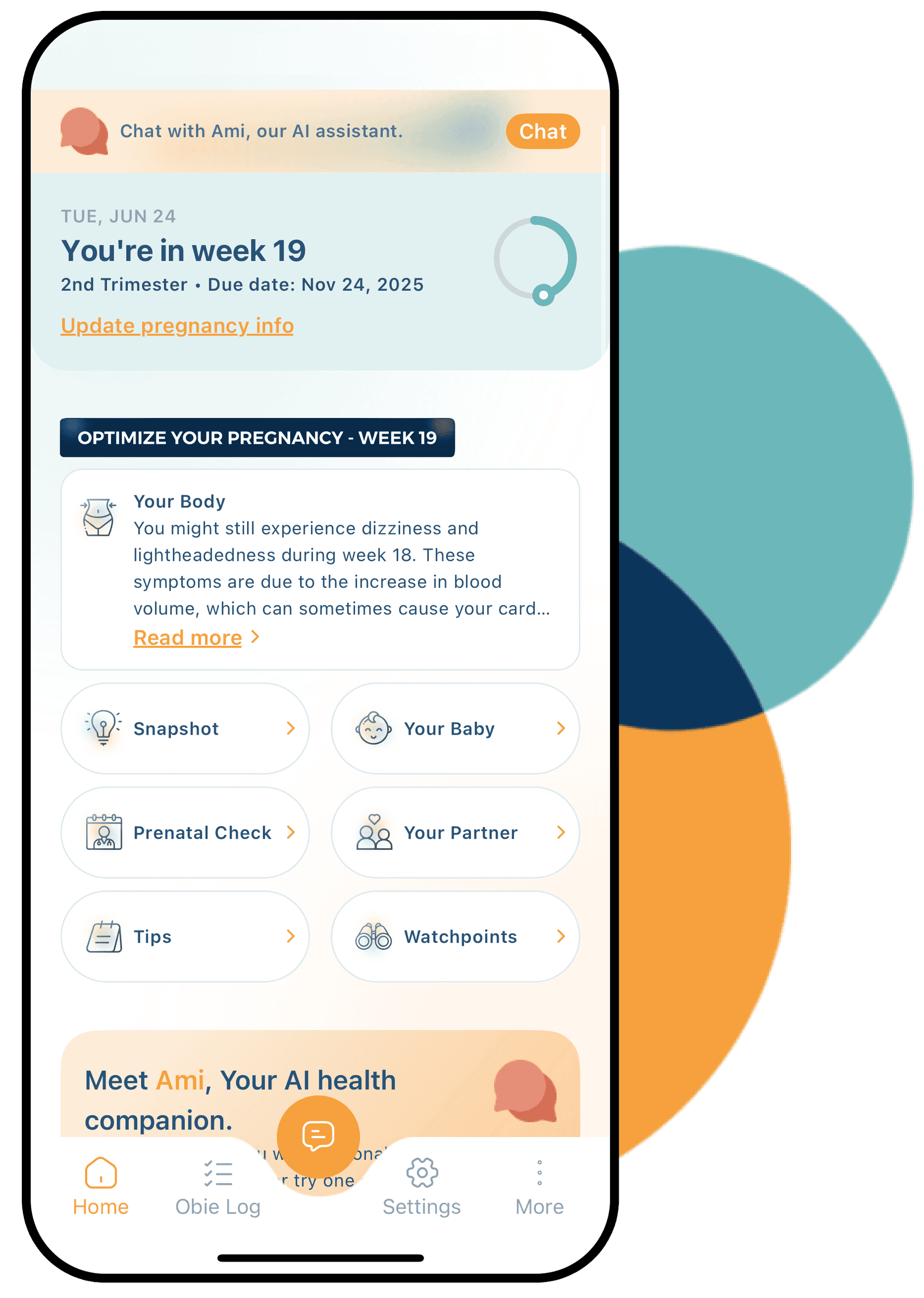 Obie helps you log symptoms, understand patterns, and navigate fertility or pregnancy — with personalized support from its built-in AI assistant.