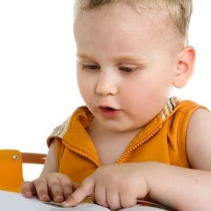 Engage him activities that teach colors, categories, opposites, matching skills and counting.